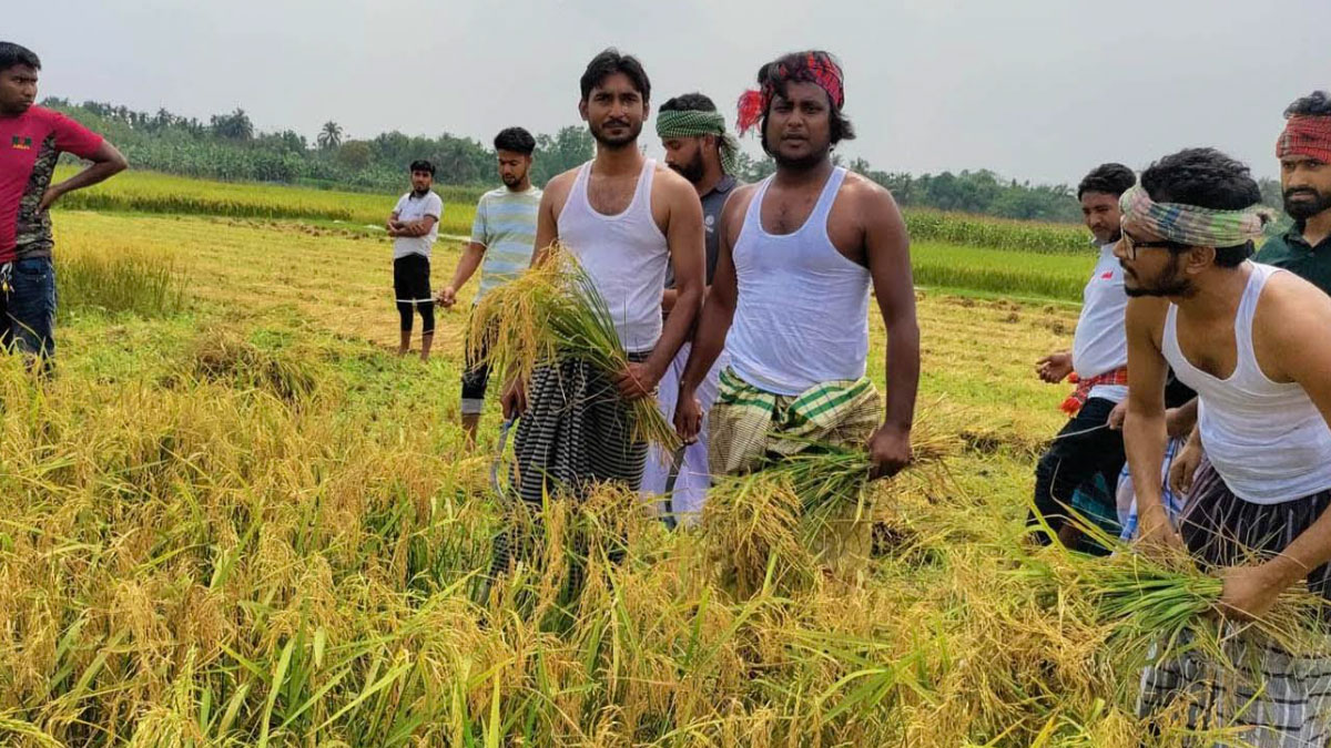 রাজবাড়ীতে ৩ কৃষকের ধান কেটে দিল ছাত্রলীগ