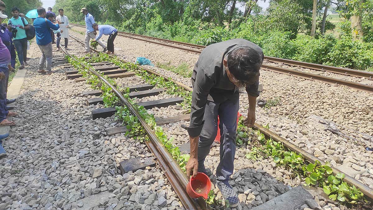 বেঁকে যাওয়া রেললাইন ঠান্ডা করতে পানি ও কচুরিপানা থেরাপি