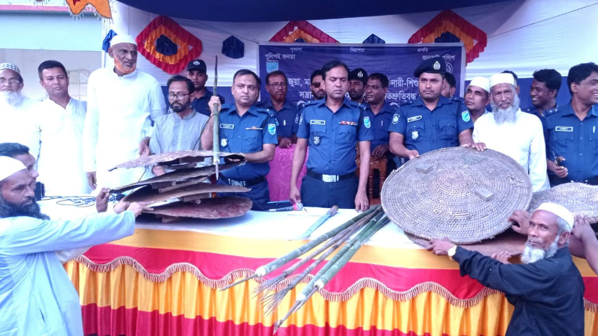 শান্তি বজায় রাখতে থানায় অস্ত্র জমা দিলেন গ্রামবাসী
