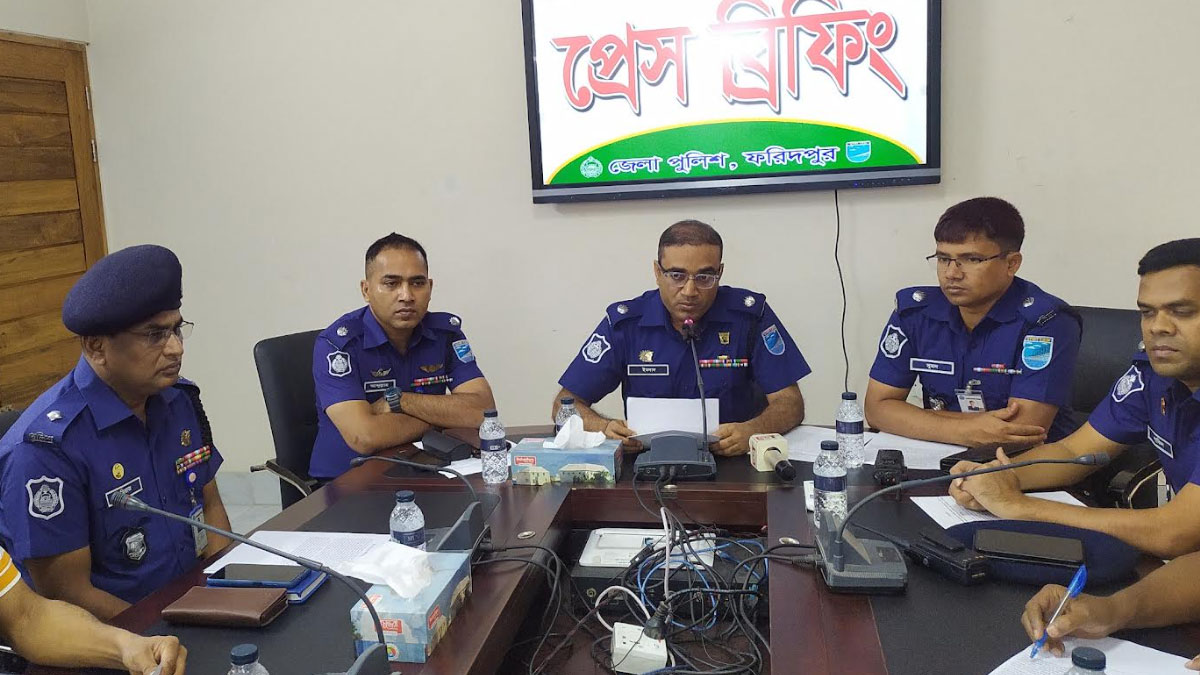 ফরিদপুরে এক সংবাদ সম্মেলনে একথা জানায় পুলিশ। শনিবার (৬ মে) বেলা ১১টার দিকে পুলিশ সুপারের কার্যালয়ে এ সংবাদ সম্মেলন অনুষ্ঠিত হয়। সংবাদ সম্মেলনে লিখিত বক্তব্য পাঠ করেন অতিরিক্ত পুলিশ সুপার (প্রশাসন ও অপরাধ) মোহাম্মদ ইমদাদ হুসাইন।