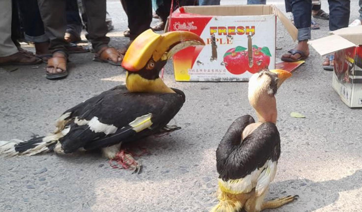 সিরাজগঞ্জে বিরল প্রজাতির দুটি রাজ ধনেশ উদ্ধার