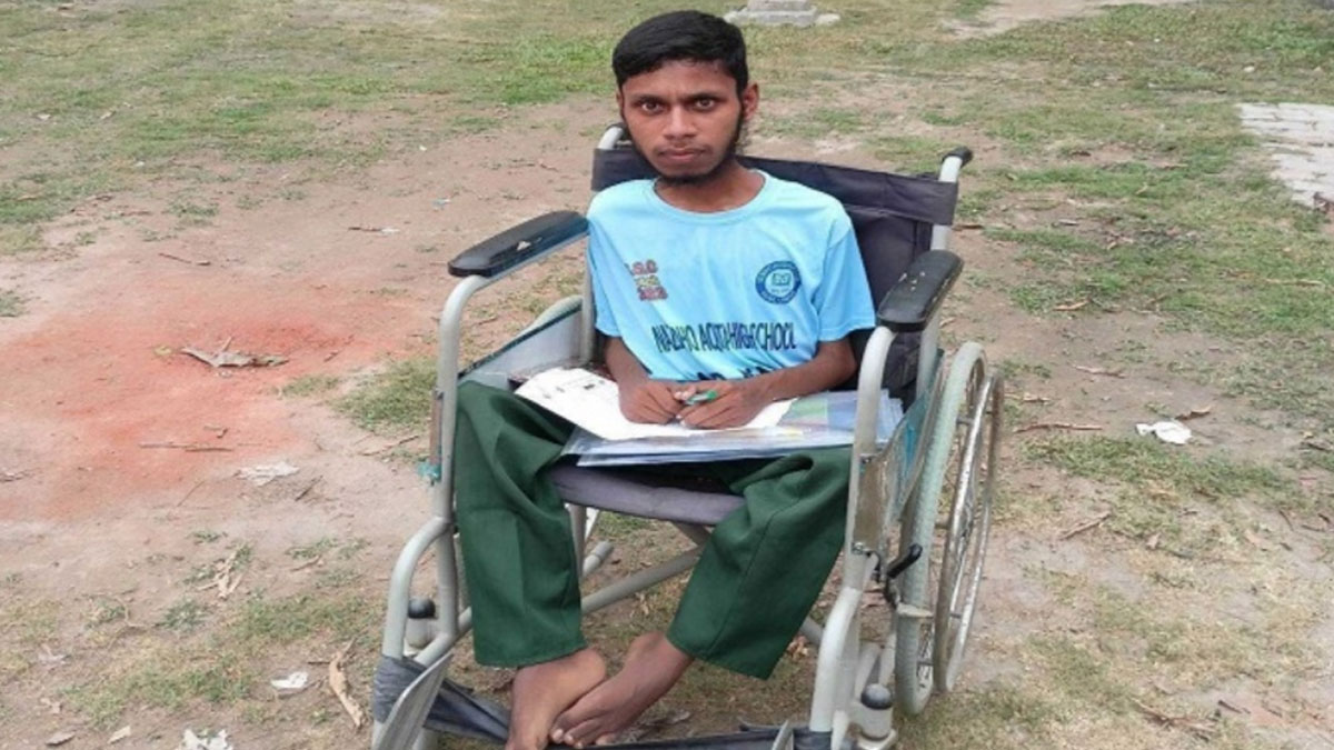 হুইল চেয়ারে বসেই এসএসসি পরীক্ষা দিচ্ছে নয়ন!