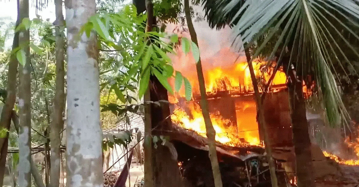নির্বাচনে আসামিদের পক্ষে কাজ না করায় বাড়িতে অগ্নিসংযোগ করে বলে অভিযোগ উঠেছে