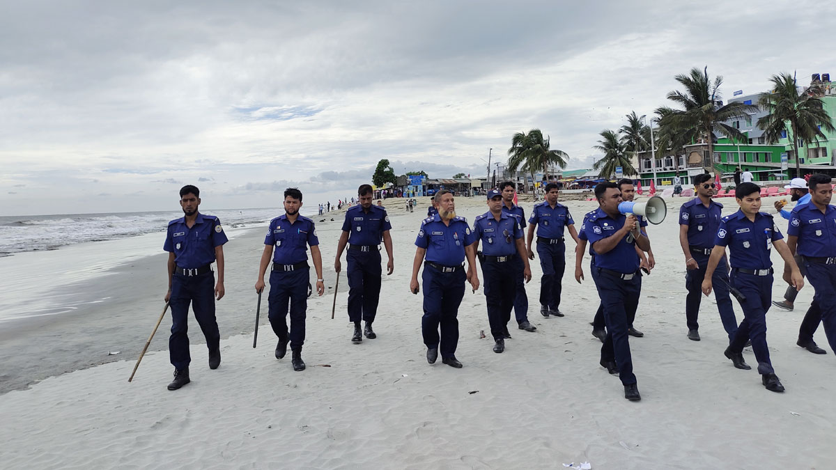কুয়াকাটা সৈকত থেকে পর্যটকদের সরে যেতে মাইকিং