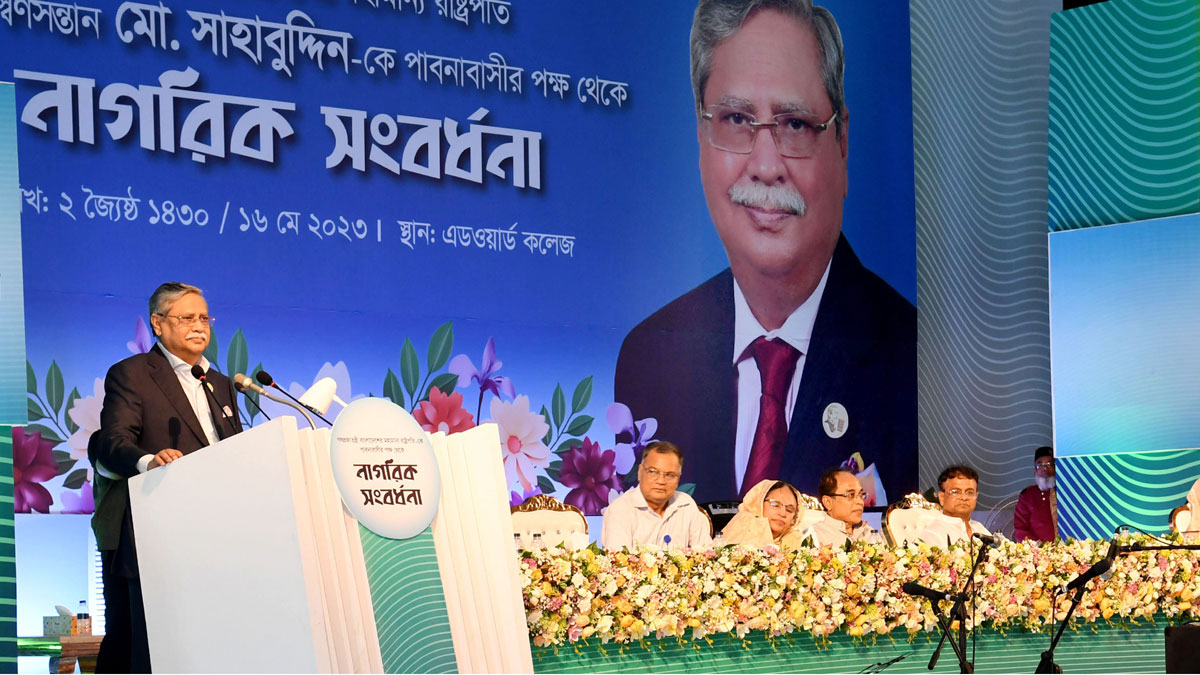 রাষ্ট্রপতি মো. সাহাবুদ্দিন বলেন, আমার আগমন ঘিরে পাবনায় যে এইভাবে আয়োজন হবে তা কল্পনাও করিনি। পাবনাবাসীর এই উচ্ছ্বাসের ঋণ আমি কীভাবে শোধ করবো? আমি চির কৃতজ্ঞ। এই আয়োজন আমি জীবনেও ভুলবো না। পাবনা এডওয়ার্ড কলেজের স্মৃতিবিজড়িত এই ঐতিহাসিক মাঠে আয়োজিত নাগরিক সংবর্ধনা সভায় উপস্থিত হতে পেরে নিজেকে ধন্য মনে করছি। আপনাদের এতো ভালোভাসা ও সম্মান পেয়ে আমি আবেগাপ্লুত আনন্দিত। ঢাকার বাহিরে প্রথম সফরেই নিজ জন্মস্থান পাবনায় আসতে পেরে আমি অত্যন্ত আনন্দিত। এডওয়ার্ড কলেজের স্মৃতিবিজড়িত এই ঐতিহাসিক মাঠে আয়োজিত নাগরিক সংবর্ধনায় উপস্থিত হতে পেরে নিজেকে ধন্য মনে করছি। কলেজে পড়াশোনা অবস্থায় কলেজ মাঠের অনেক স্মৃতি এখন মনে পড়ছে। এখান থেকে আমি ছাত্র রাজনীতি করেছি।