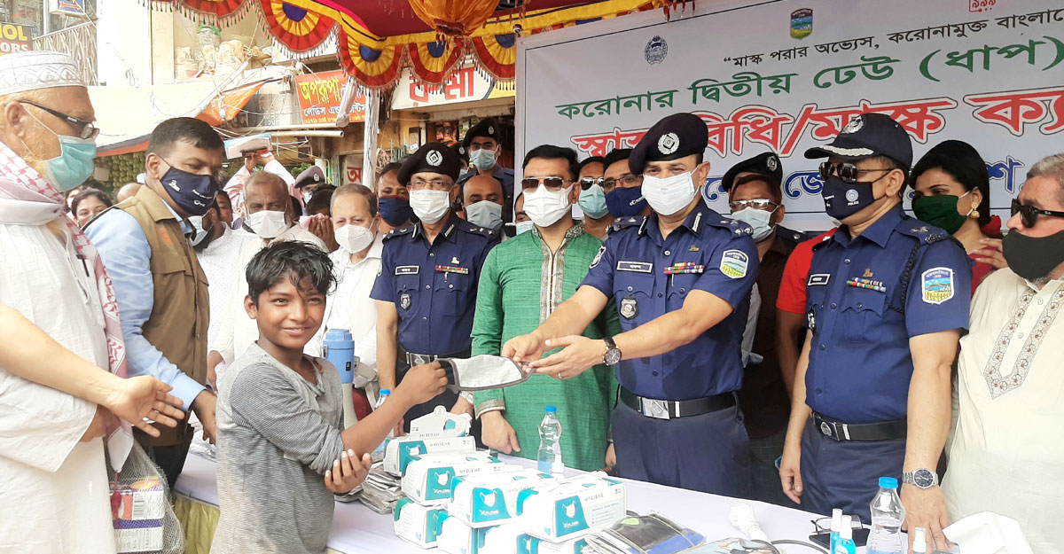 বক্তব্য শেষে সাধারণ মানুষের মাঝে মাস্ক বিতরণ করেন অতিথিরা। এছাড়াও ‘মাস্ক পড়ার অভ্যেস, করোনামুক্ত বাংলাদেশ’, ‘লড়বো জিতবো বাঁচবো, করোনাকে রুখবো’, ‘স্বাস্থ্যবিধি অনুসরণ করি, করোনামুক্ত বাংলাদেশ গড়ি’, ‘আপনি বাঁচলে বাঁচবে দেশ, করোনামুক্ত বাংলাদেশ’ ইত্যাদি স্লোগান সংবলিত প্ল্যাকার্ড হাতে নিয়ে জনসচেতনতায় কাজ করেন পুলিশ সদস্যরা।