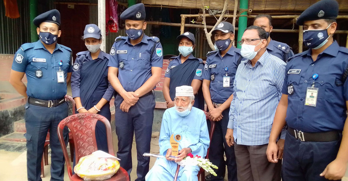 বঙ্গবন্ধুকে স্বচোখে দেখা শতবর্ষীদের বাড়িতে ফুল নিয়ে গেলেন ওসি