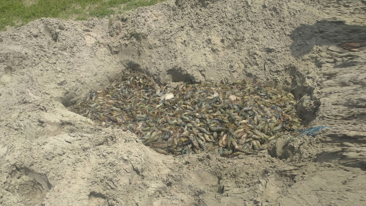 চাঁদপুরে মাটিতে পুঁতে ফেলা হলো ১৫০০ কেজি চিংড়ি