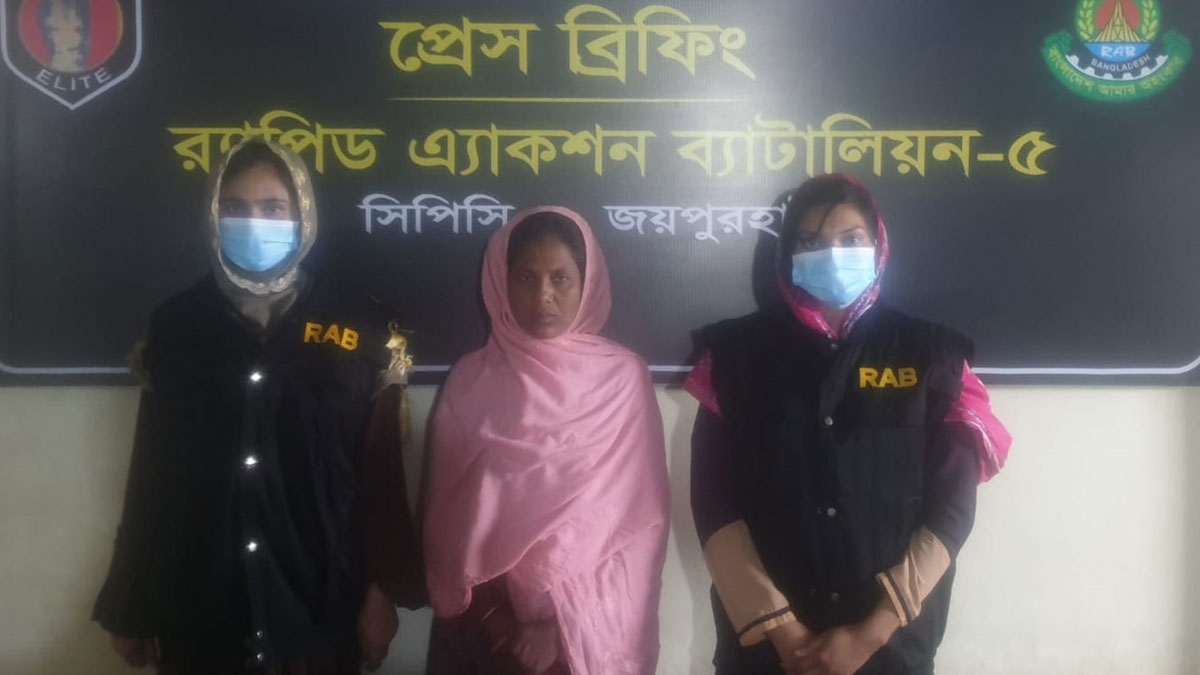 আটক কারবারি হলেন, মোছা. নূর ছাফা (৪০)। তিনি হাকিমপুর উপজেলার নোয়াপাড়া গ্রামের ইসাহাক আলীর স্ত্রী। অভিযানে নেতৃত্ব দেন জয়পুরহাট র্যাব ক্যাম্পের ভারপ্রাপ্ত অধিনায়ক সিনিয়র সহকারি পুলিশ সুপার রফিকুল ইসলাম।