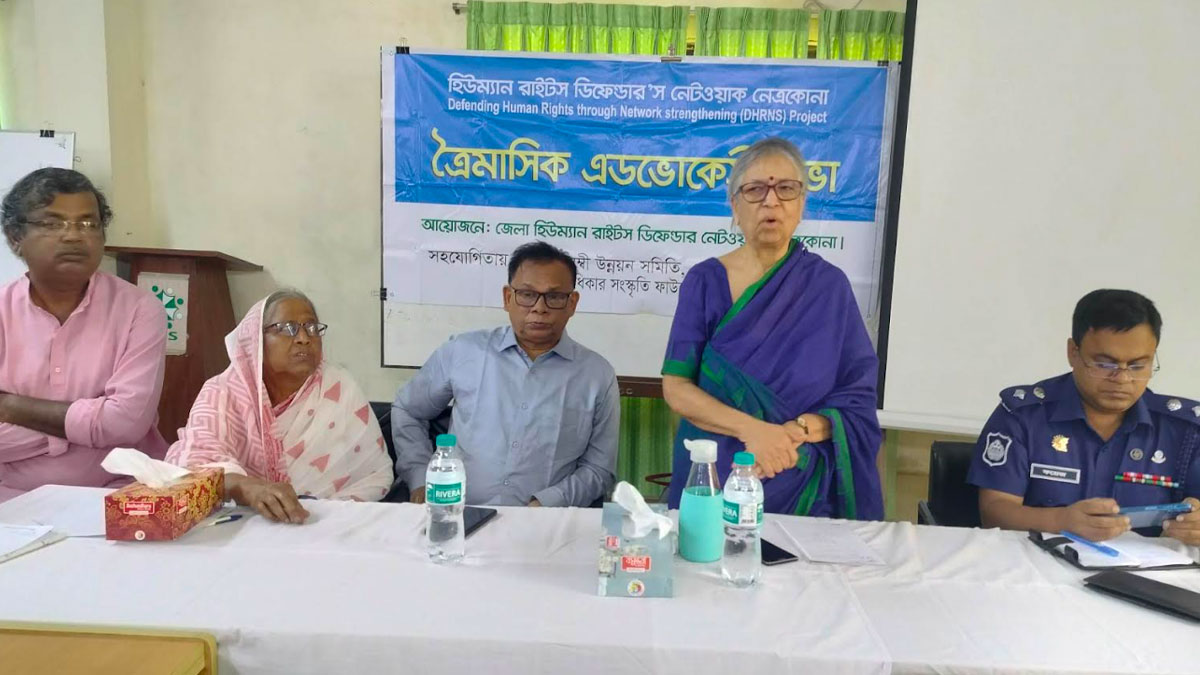 বুধবার (২৪ মে) নেত্রকোণার বেসরকারি সংস্থা স্বাবলম্বী উন্নয়ন সমিতির সম্মেলন কক্ষে ‘হিউম্যান রাইটস্ ডিফেন্ডার্স নেটওয়ার্ক’ এর সদস্যদের নিয়ে আয়োজিত এক সভায় প্রধান অতিথির বক্তব্যে তিনি এসব কথা বলেন।