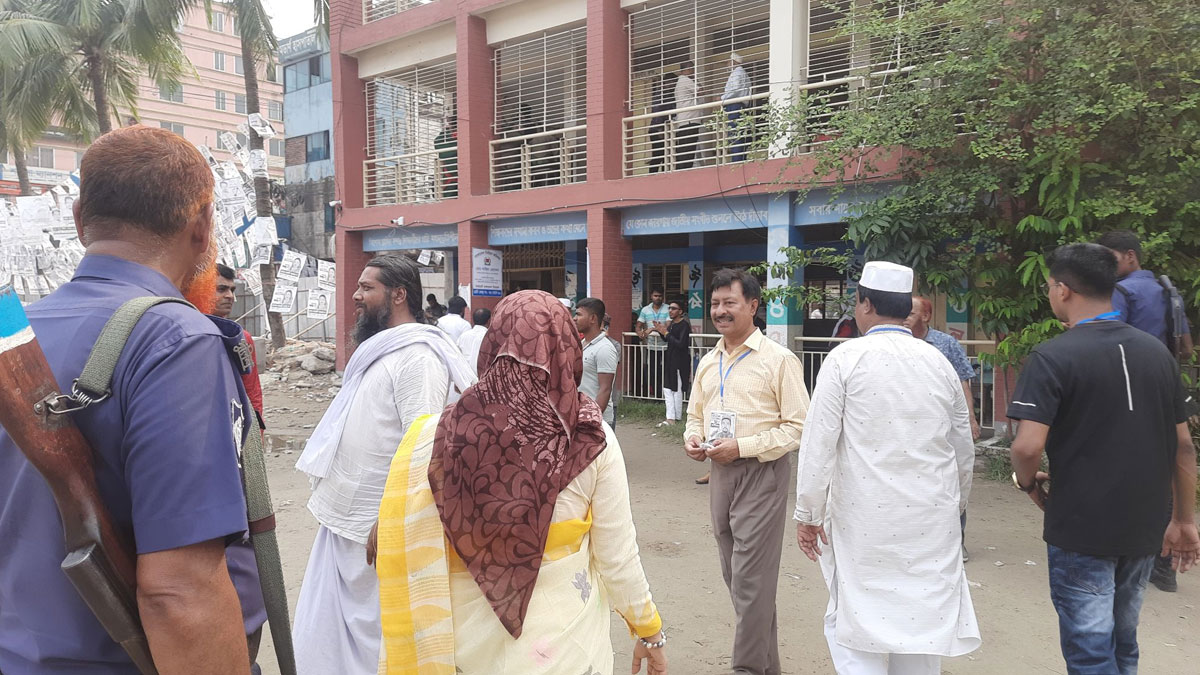 বৃহস্পতিবার (২৫ মে) বিকেল তিনটার দিকে গাজীপুর চৌরাস্তা এলাকার চান্দনা উচ্চ বিদ্যালয় ও কলেজের ভোট কেন্দ্রে এমন দৃশ্য দেখা যায়।