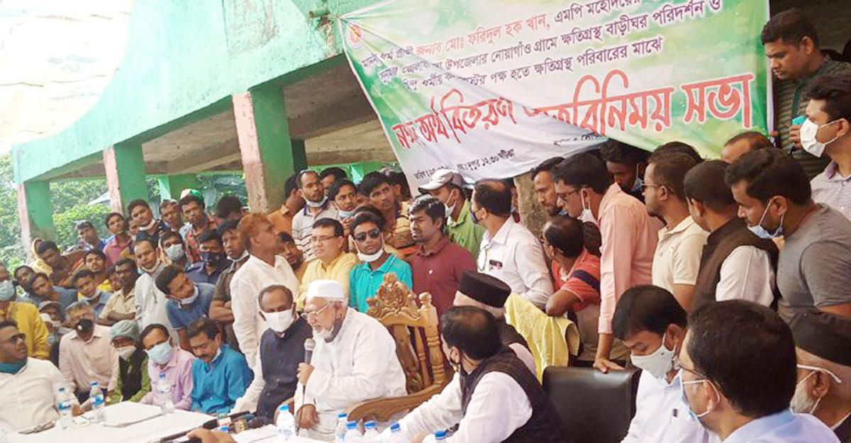 ক্ষতিগ্রস্ত গ্রাম পরিদর্শন শেষে ধর্ম প্রতিমন্ত্রী ফরিদুল হক খান