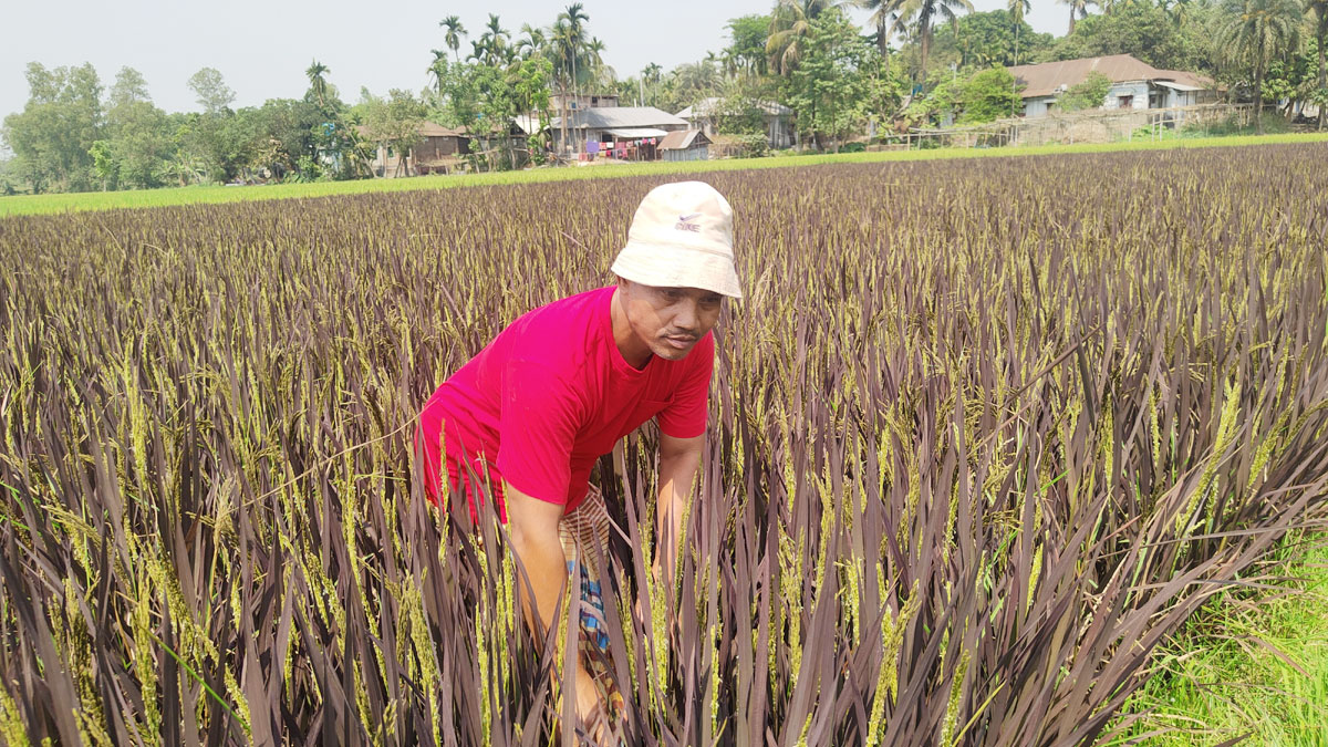 এবার বেগুনি ধান চাষে শফিকুলের চমক