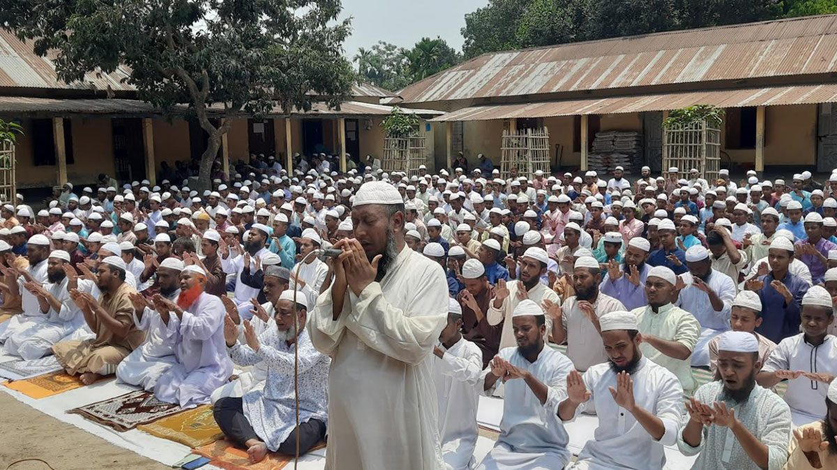 নামাজ শেষে অনাবৃষ্টি থেকে মুক্তির জন্য মুফতি হারুনুর রশীদ বিশেষ মোনাজাত পরিচালনা করেন।