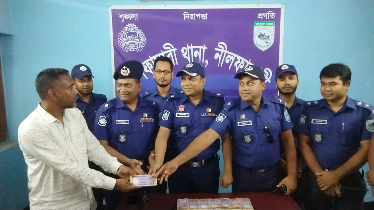 সংবাদটি পাওয়া মাত্র নীলফামারী সদর থানার মোবাইল টিমের দায়িত্বের থাকা এসআই রনি ও কয়েকজন পুলিশ সদস্য সঙ্গে নিয়ে তাৎক্ষণিক উক্ত এলাকার বিভিন্ন জায়গায় তল্লাশি শুরু করে। পরে বিকেল ৩টার দিকে চায়ের দোকানদার জবেদ আলীর বাড়ি থেকে টাকার ব্যাগটি সম্পূর্ণ অক্ষত অবস্থায় উদ্ধার করা হয়। সন্ধ্যায় সবার উপস্থিতিতে টাকার প্রকৃত মালিককে হস্তান্তর করা হয়।