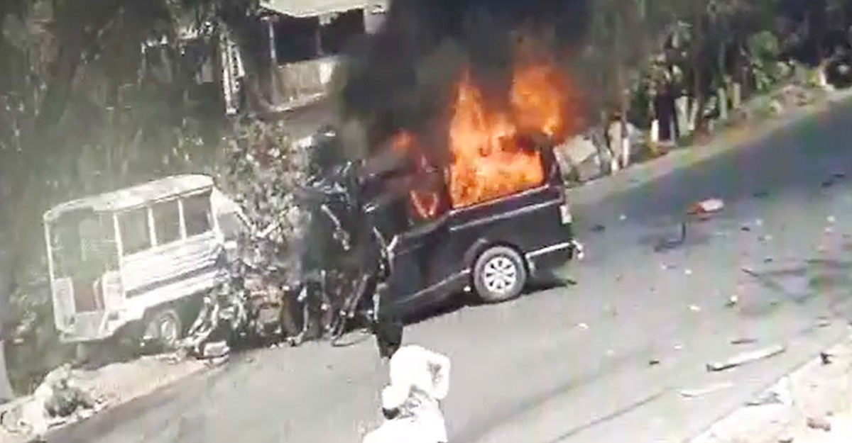রাজশাহীতে দুর্ঘটনার পর মাইক্রোবাসে আগুন লেগে যায়