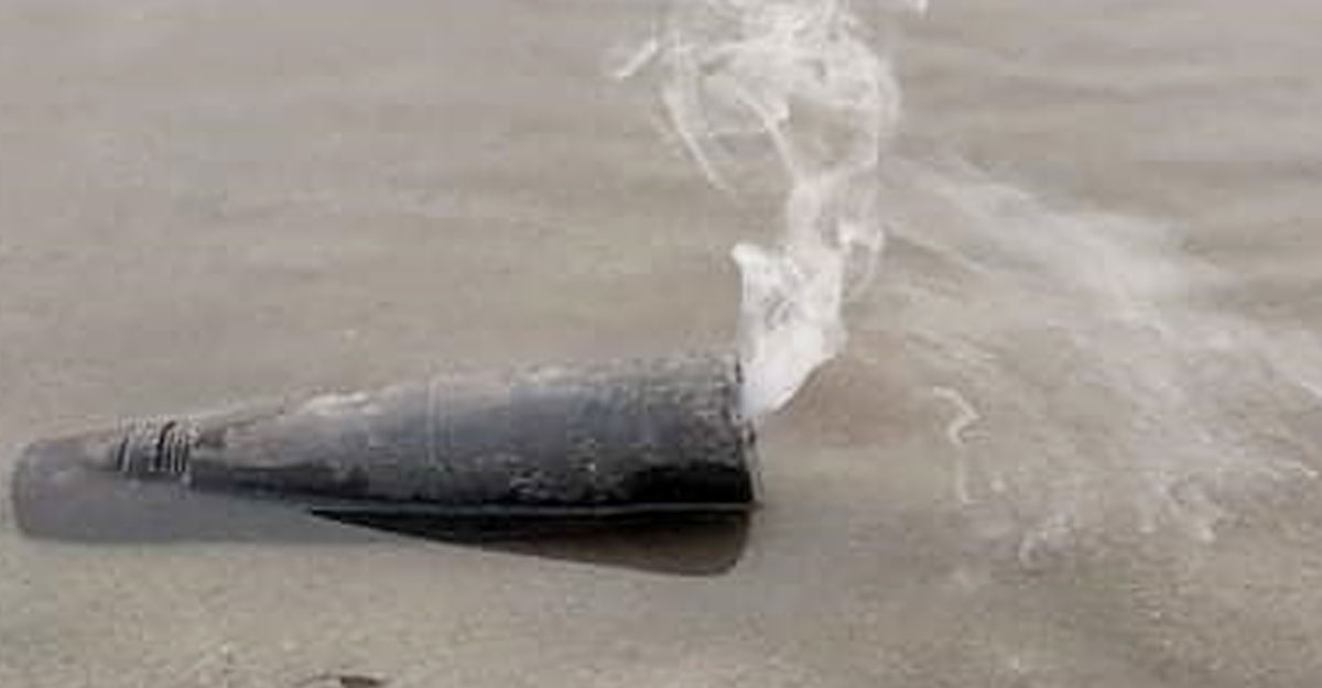 নদীতে পাওয়া গেল কামানের গোলা সাদৃশ্য বস্তু, বের হচ্ছে ধোঁয়া