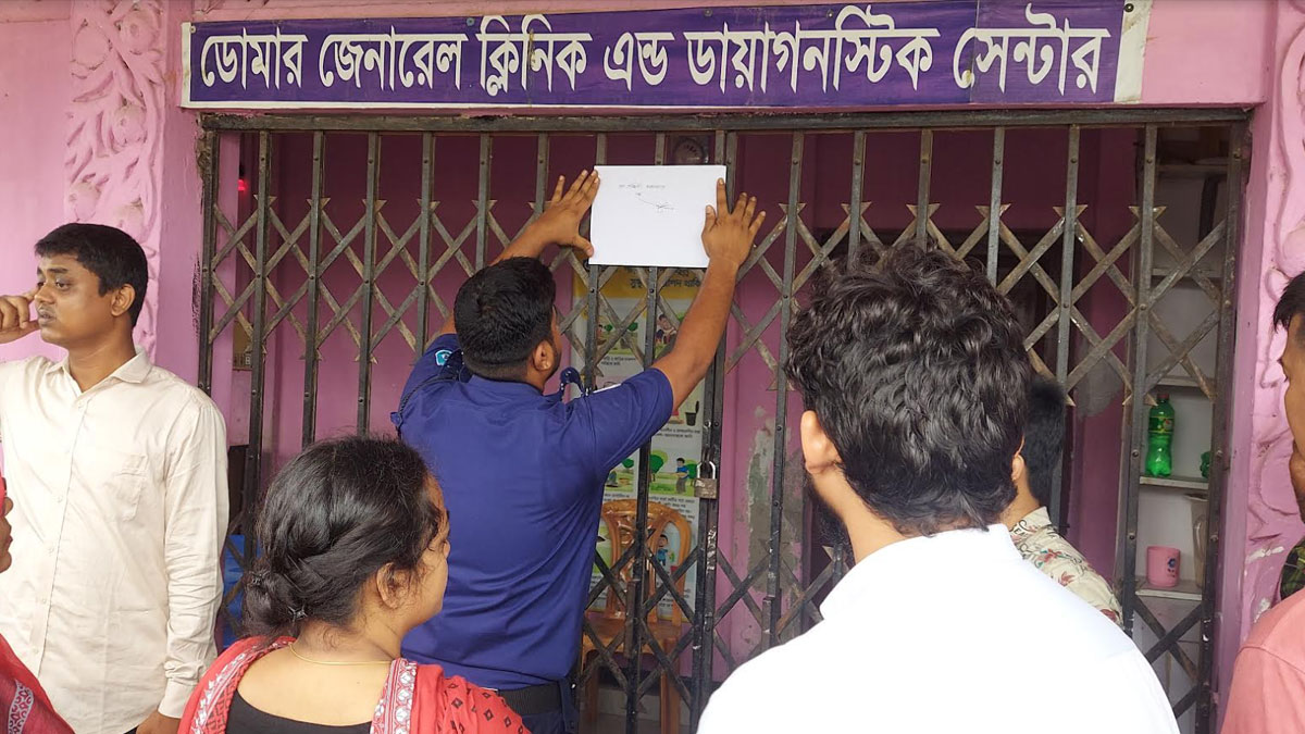 নীলফামারীর ডোমার জেনারেল ক্লিনিক অ্যান্ড ডায়াগনস্টিক সেন্টারে ১৩ বছরের এক কিশোরীর অন্তঃসত্ত্বা হওয়ার ভুল রিপোর্ট দেওয়ার ঘটনায় ওই ক্লিনিকটি সাময়িকভাবে বন্ধ করে দিয়েছেন ভ্রাম্যমাণ আদালত। সেই সঙ্গে প্রতিষ্ঠান মালিকের কাছ থেকে ২২ হাজার টাকা জরিমানা আদায় করা হয়েছে।
