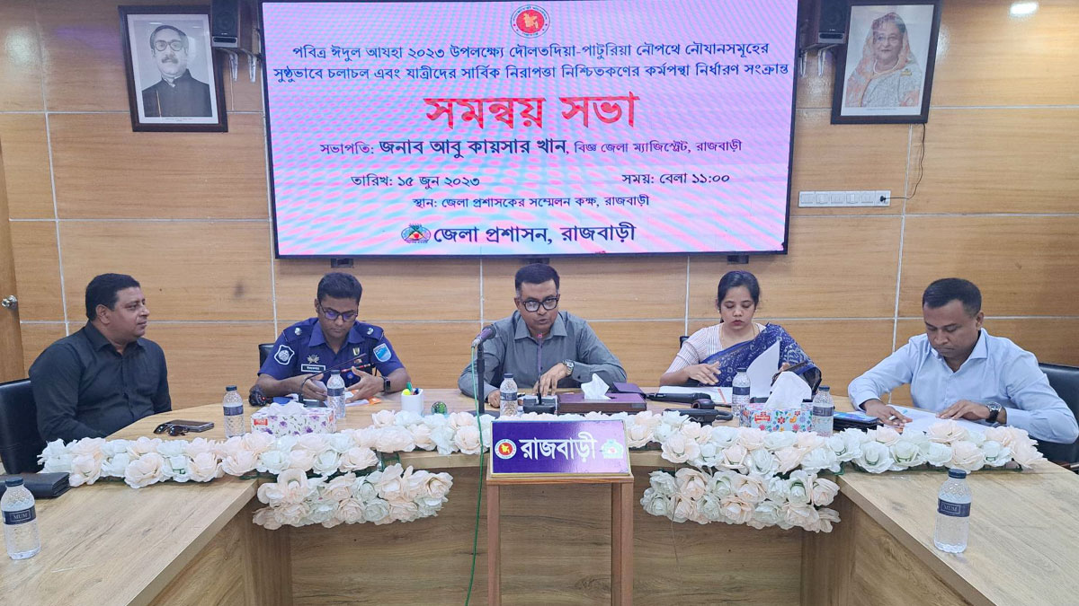 জেলা প্রশাসক আবু কায়সার খানের সভাপতিত্বে অতিরিক্ত পুলিশ সুপার (সদর সার্কেল) মো. ইফতেখায়রুজ্জামান, বিআইডব্লিটিসি দৌলতদিয়া ঘাটের ব্যবস্থাপক মো.সালাহউদ্দিন, গোয়ালন্দ পৌরসভার মেয়র নজরুল ইসলাম মন্ডল, গোয়ালন্দ উপজেলা নির্বাহী কর্মকর্তা (ইউএনও) মো. জাকির হোসেন, রাজবাড়ী জেলা বাস মালিক সমিতির সাধারণ সম্পাদক আব্দুর রাজ্জাক লিটন, গোয়ালন্দ ঘাট থানার ওসি স্বপন কুমার মজুমদার প্রমুখ উপস্থিত ছিলেন।