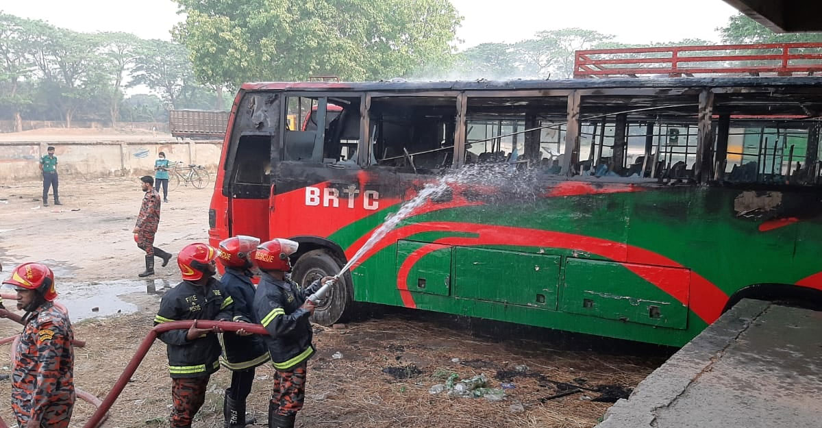 রাজশাহীতে বিআরটিসির দুটি বাসে আগুন