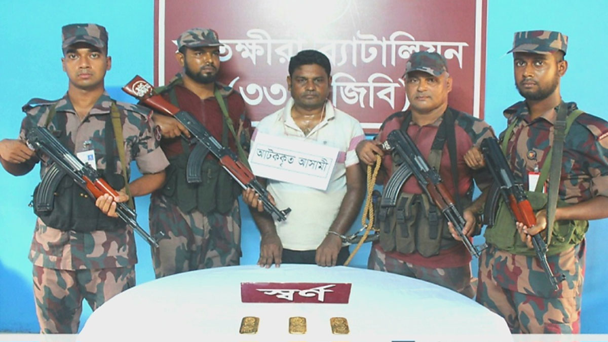 সাতক্ষীরা সীমান্তে ৩টি সোনার বারসহ চোরাকারবারি আটক