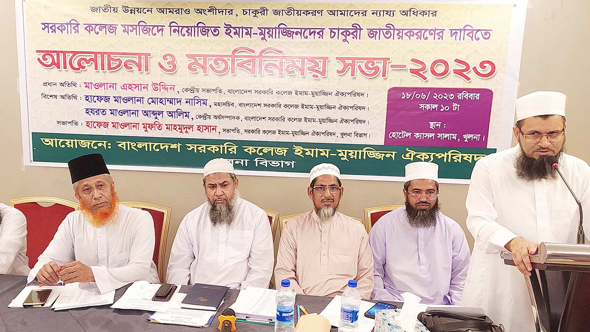 সভায় খুলনা বিভাগের বিভিন্ন সরকারি কলেজ মসজিদের ইমাম ও মুয়াজ্জিনগণ বক্তৃতা করেন।