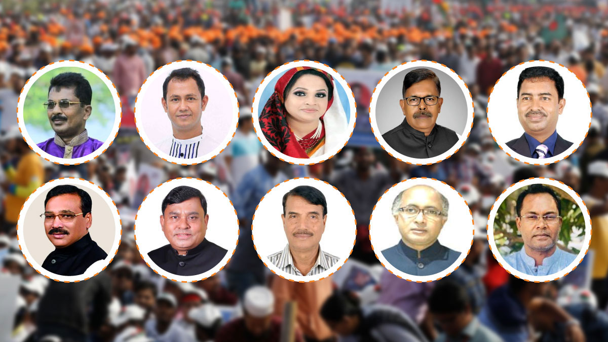 করুণা সিন্ধু বাবুল, কামরুজ্জামান কামরুল, শামীমা আক্তার খানম, আনিসুল হক, মোয়াজ্জেম হোসেন রতন, রঞ্জিত সরকার, নজির হোসেন, ডা. রফিকুল ইসলাম ও সেলিম আহমেদ (ওপরের বাম থেকে)