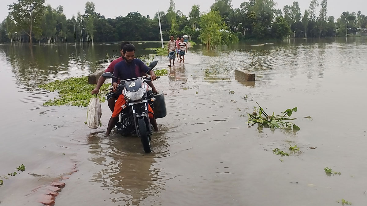 কুড়িগ্রামে পানির নিচে গ্রামীণ সড়ক, চলাচলে ভোগান্তি