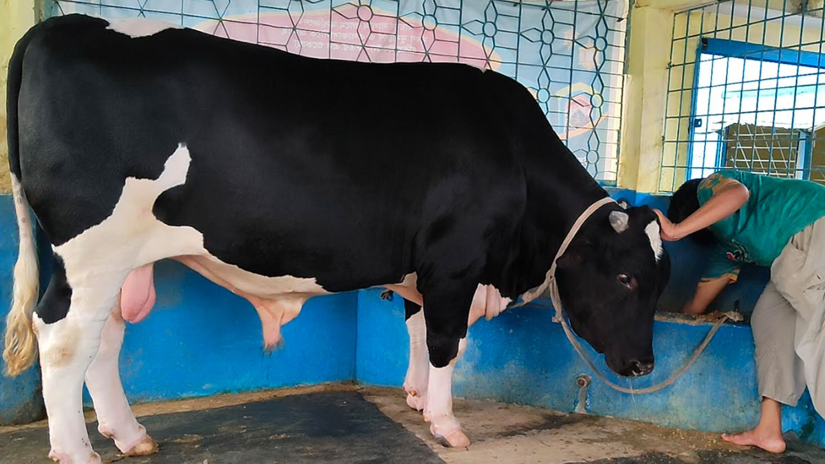 চলনে বলনে শান্ত, নাদুস-নুদুস চেহারা। পুরো শরীর জুড়ে মাংস আর মাংস। সাদা ও কালো রঙের সংমিশ্রণে হোলস্টাইন ফ্রিজিয়ান ষাঁড়টি দেখতে খুবই সুন্দর। তাই তার নাম রাখা হয়েছে চৌধুরী। প্রথম দেখাতে যে কেউ পছন্দ করবেন। এবারের কোরবানির প্রধান আকর্ষণ। লোকজন আসছেন, দেখছেন। দামও করছেন কেউ কেউ। এটি রাখা হয়েছে নীলফামারীর সৈয়দপুরের বাঁশবাড়ি এলাকার মেসার্স ইউসুফ হৃষ্টপুষ্ট খামার ও ডেইরি ফার্মে। ৩৩ মণ ওজনের চৌধুরীর দাম হাঁকা হয়েছে ১৫ লাখ টাকা।