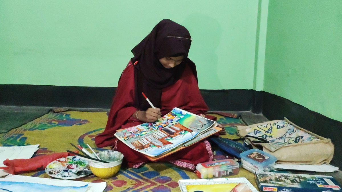 দিনাজপুরের মেয়ে আঁখির আঁকা ছবিতে প্রধানমন্ত্রীর ঈদ শুভেচ্ছা