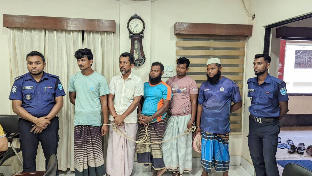 অভিযুক্তরা হলেন- মিলন সরদার (২৮), শাহ আলম তপাদার (৩৮), শাহ আলম সরদার (৪৪), ওবায়দুল ইসলাম (৩৫) ও নুর আলম তপদার (৩৪)। তারা সবাই সখিপুর বাজারের মাংস ব্যবসায়ী।