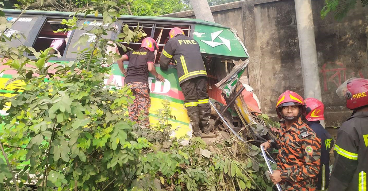 ফায়ার সার্ভিস কর্মীরা উদ্ধার কাজ চালাচ্ছেন