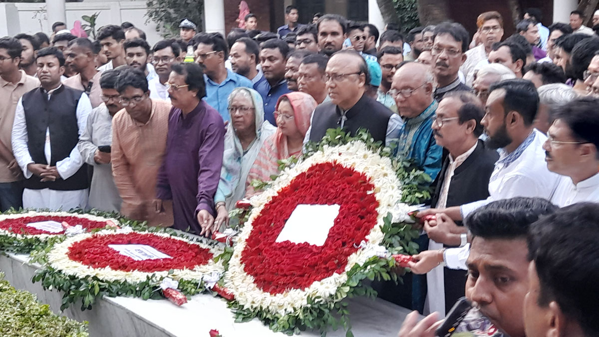সোমবার (৩ জুলাই) সন্ধ্যা ৬টার দিকে বঙ্গবন্ধুর সমাধিতে পুষ্পস্তবক অর্পণ করে তারা শ্রদ্ধা নিবেদন করেন। পরে বঙ্গবন্ধু ও তার পরিবারের শহীদ সদস্য ও মহান মুক্তিযুদ্ধে শহীদদের রুহের মাগফেরাত কামনা করে ফাতেহা পাঠ ও বিশেষ মোনাজাত করেন।