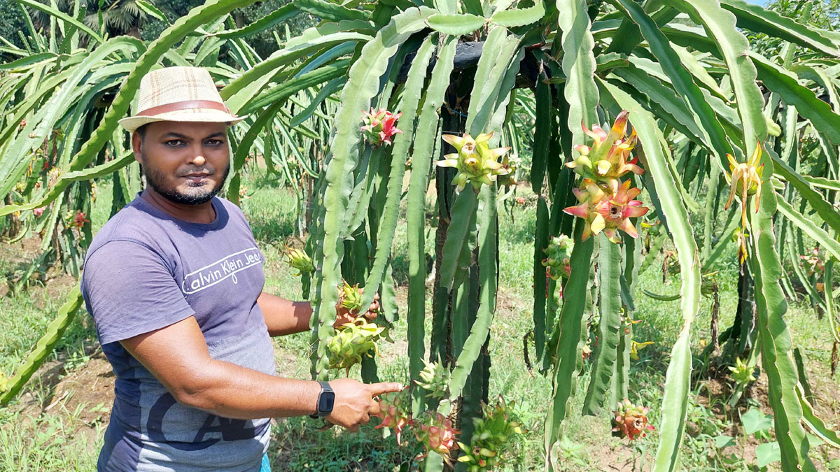 ড্রাগন চাষে অন্যদের পথ দেখাচ্ছেন বাপ্পি, ছেলের সাফল্যে বাবাও খুশি
