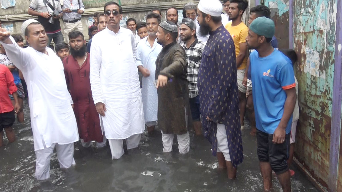 পানিতে নেমে জলাবদ্ধতার প্রতিবাদ শামীম ওসমানের