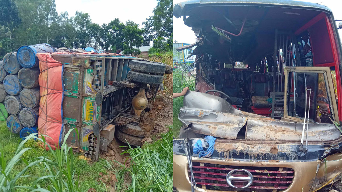 বাস-ট্রাকের ত্রিমুখী সংঘর্ষে প্রাণ গেল বাবা-ছেলের