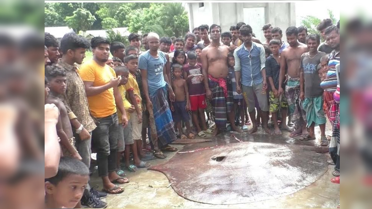 স্থানীয় সূত্রে জানা যায়, ওই উপজেলার মহাজন উত্তর পাড়া গ্রামের মৃত বাসুদেব বিশ্বাসের ছেলে রতন বিশ্বাস প্রতিদিনের মতো মাছ ধরার উদ্দেশ্যে নদীতে পাইড়জাল ফেলেন। শনিবার সকালে জাল ওঠানোর সময় অতিরিক্ত ওজন অনুভব করায় ১০-১২ জন জেলের সহায়তায় জাল টেনে ওপরে তুলে আনুমানিক ৫ মন ওজনের শাপলাপাতা মাছটি দেখতে পান। দৈর্ঘ্য প্রস্থের প্রায় ৭ ফুট বিশাল আকৃতির শাপলাপাতা মাছটি দেখতে মহাজন উত্তরপাড়া শ্মশানঘাটে শত শত মানুষ ভিড় জমায়।