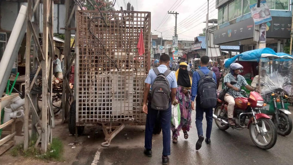 রিকশাভ্যান চালক বেলাল হোসেন বলেন, এ সড়কে সবসময় একটি কুরিয়ার সার্ভিসের মালামাল আনা নেওয়া করি। দিনে রাতে কত বার যে এ সড়কটি দিয়ে যাতায়াত করতে হয় তার কোনো ইয়ত্তা নেই। সড়কের ওপর বৈদ্যুতিক ট্রান্সফরমারটি থাকায় ভয় হয়। আতঙ্কে আছি কখন কে যে মারাত্মক দুর্ঘটনায় পড়েন।