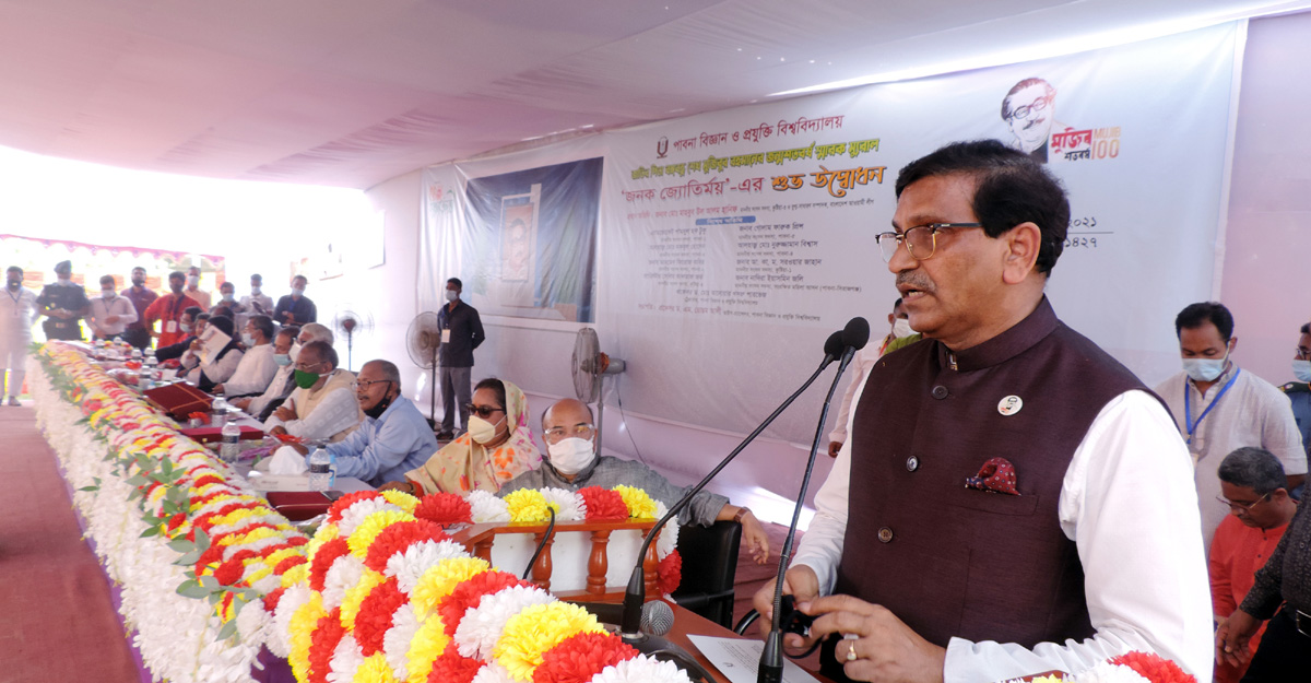 মঙ্গলবার (৩০ মার্চ) দুপুরে পাবনা বিজ্ঞান ও প্রযুক্তি বিশ্ববিদ্যালয়ে জাতির জনক বঙ্গবন্ধু শেখ মুজিবুর রহমানের জন্মশতবর্ষ উপলক্ষে ‘জনক জ্যোতির্ময়’ ম্যুরাল উদ্বোধন অনুষ্ঠানে এসব কথা বলেন তিনি।