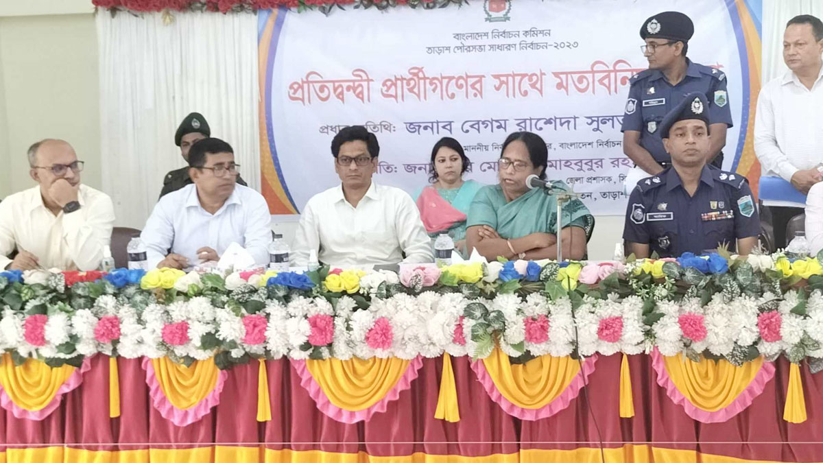 বুধবার (১২ জুলাই) দুপুরে তাড়াশ উপজেলা মিলনায়তনে জেলা প্রশাসক মীর মো. মাহবুবুর রহমানের সভাপতিত্বে প্রথমবারের মতো তাড়াশ পৌরসভা নির্বাচন উপলক্ষ্যে প্রতিদ্বন্দ্বী প্রার্থীদের সঙ্গে মতবিনিময় সভায় প্রধান অতিথির বক্তব্যে তিনি এসব কথা বলেন।