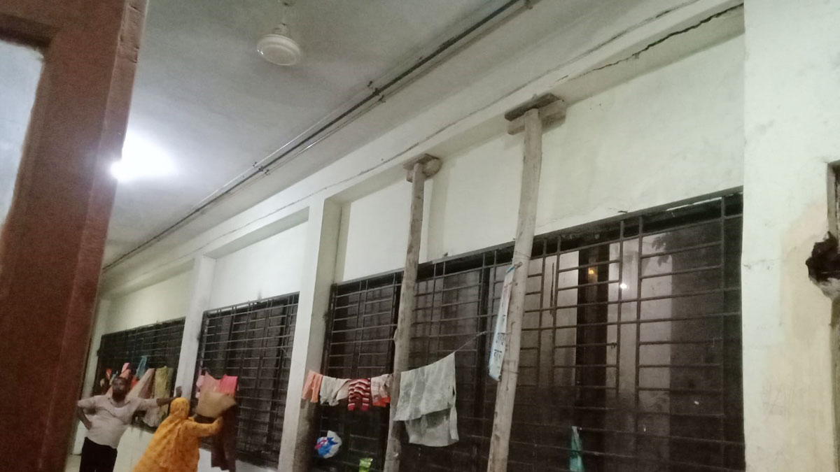 ভবনের বিমে ফাটল, পলেস্তারা পড়া ঠেকাতে বাঁশের খুঁটি