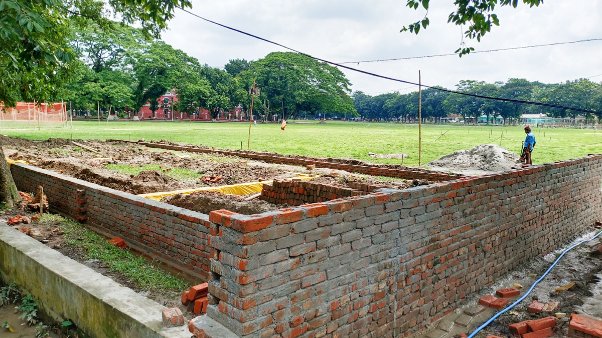 সম্প্রতি ঐতিহাসিক এই মাঠের পশ্চিম পাশে খেলোয়াড়দের জন্য ড্রেসিংরুম নির্মাণের উদ্যোগ নিয়েছে জেলা ক্রীড়া সংস্থা। কয়েকদিন ধরে চলছে কাজও। তোলা হয়েছে দেয়ালের কিছু অংশ। তবে আকস্মিকভাবে মাঠের ভেতরে কংক্রিটের ড্রেসিংরুম নির্মাণকে ঘিরে শুরু হয়েছে আলোচনা-সমালোচনা, ক্ষুব্ধ প্রতিক্রিয়া জানাচ্ছেন সুশীল সমাজের ব্যক্তিবর্গসহ বিভিন্ন শ্রেণিপেশার মানুষ।