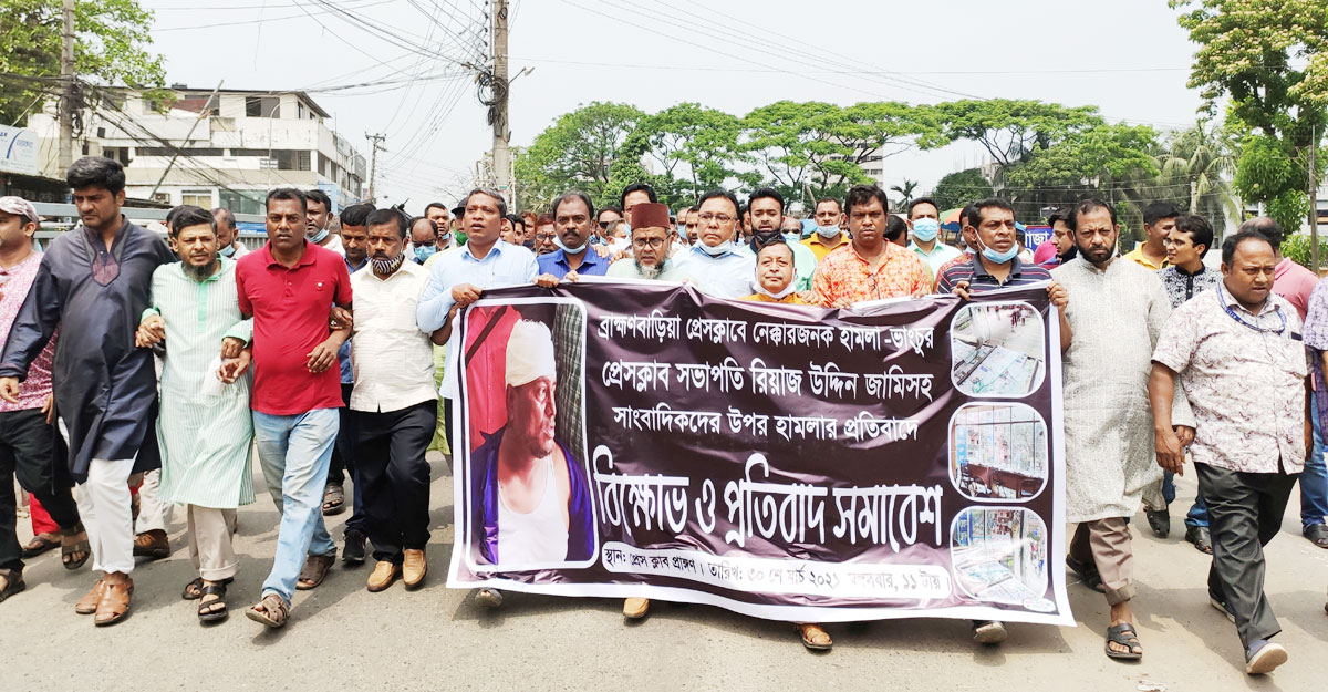 মঙ্গলবার বেলা সাড়ে ১১টার দিকে ব্রাহ্মণবাড়িয়া প্রেসক্লাব চত্বর থেকে সাংবাদিকরা বিক্ষোভ মিছিল বের করেন। এরপর মিছিলটি শহরের প্রধান সড়ক (টি.এ.রোড) প্রদক্ষিণ করে পুনরায় প্রেসক্লাব চত্বরে এসে শেষ হয়। এরপর সেখানে প্রতিবাদ সমাবেশ অনুষ্ঠিত হয়।