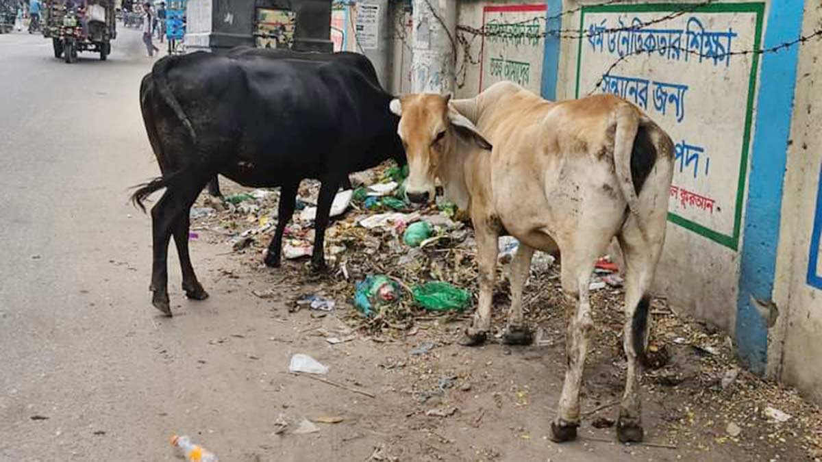 চুয়াডাঙ্গায় রাস্তায় অবাধে ঘোরাঘুরি করা ২ গরু আটক