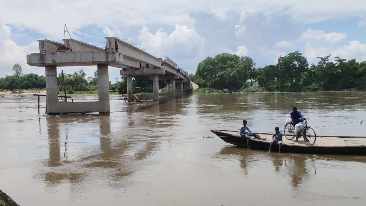 নির্মাণাধীন সেতুর গার্ডার ভেঙে পড়ল নদীতে