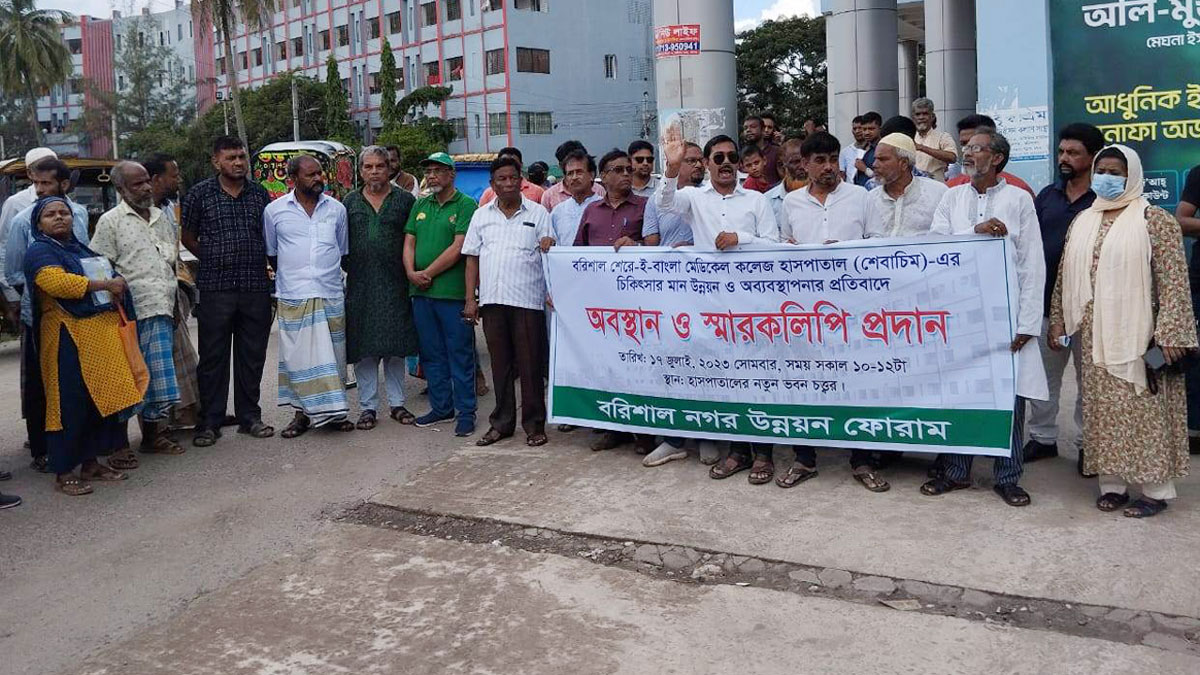 বরিশাল শের-ই-বাংলা মেডিকেল কলেজ (শেবাচিম) হাসপাতালে রোগীদের সঠিক চিকিৎসা নিশ্চিত করাসহ নয় দফা দাবিতে অবস্থান কর্মসূচি পালন করেছে বরিশাল নগর উন্নয়ন ফোরাম। কর্মসূচি শেষে প্রধানমন্ত্রী ও স্থানীয় সরকারের ছয়টি দপ্তরে স্মারকলিপি প্রদান করা হয়।