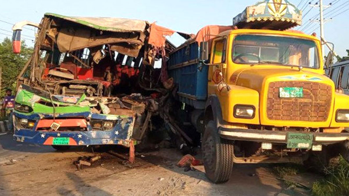 দাঁড়িয়ে থাকা ট্রাকের সঙ্গে বাসের সংঘর্ষ, নিহত ২