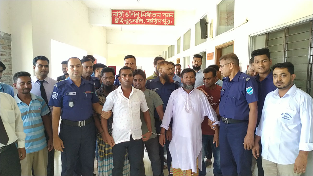 মৃত্যুদণ্ডপ্রাপ্তরা হলেন- মধুখালী উপজেলার আড়পাড়া ইউনিয়নের পশ্চিম আড়পাড়া গ্রামের চুন্নু সিকদার (৩২), ইসলাম মীর (৩৬), আতিয়ার মোল্লা (৪৬), নাসির খান (৪৪) ও কামারখালী বাজার এলাকার মো. নাজমুল হোসেন (৩৬)। রায় ঘোষণার সময় আসামিরা আদালতে উপস্থিত ছিলেন।