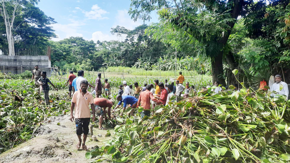 স্থানীয় গ্রামগুলোর নারী-পুরুষ, ছাত্র-শিক্ষক, স্কাউট, আনসার-ভিডিপি, গ্রাম পুলিশ, এনজিও কর্মী, সরকারি-বেসরকারি কর্মকর্তা, মুক্তিযোদ্ধা, জনপ্রতিনিধি ও রাজনীতিবিদসহ সর্বস্তরের প্রায় ১০ হাজার মানুষ এই কচুরিপানা অপসারণ কাজে অংশ নেন।