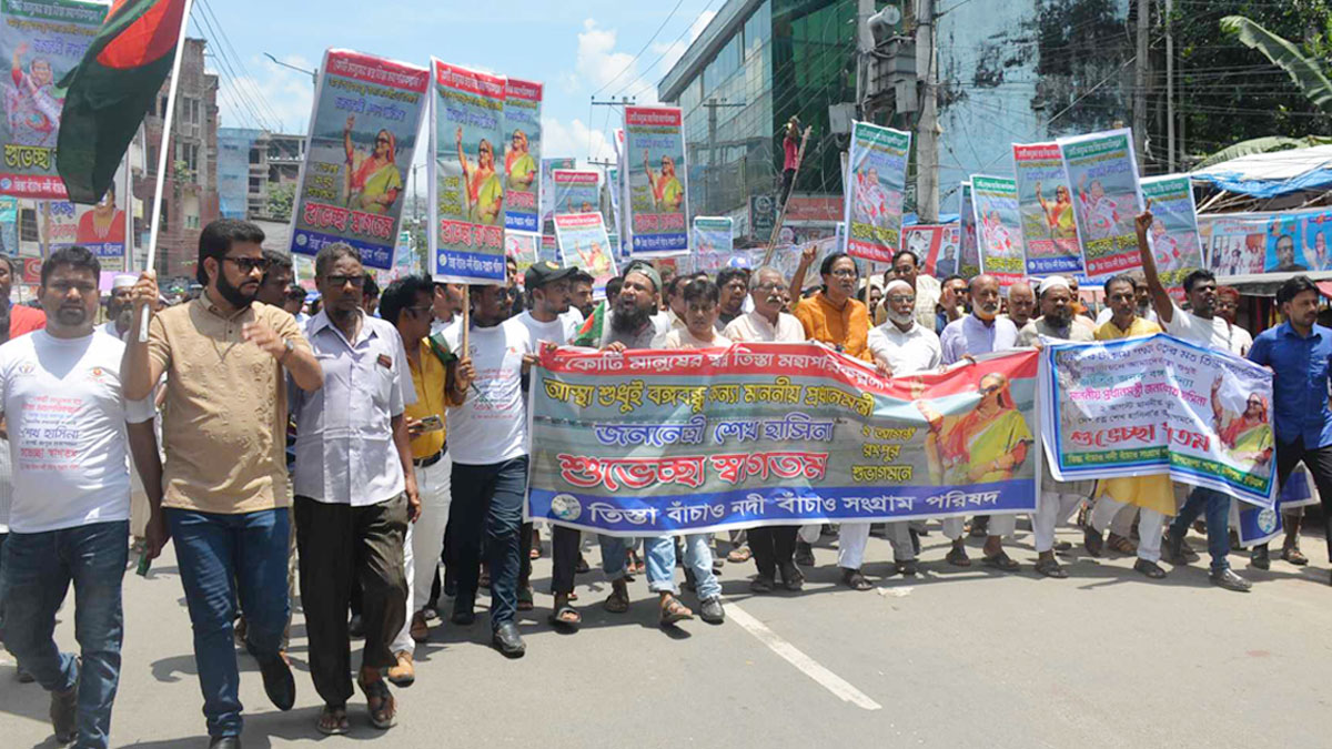 প্রধানমন্ত্রীকে স্বাগত জানিয়ে তিস্তাপাড়ের মানুষের আনন্দ মিছিল